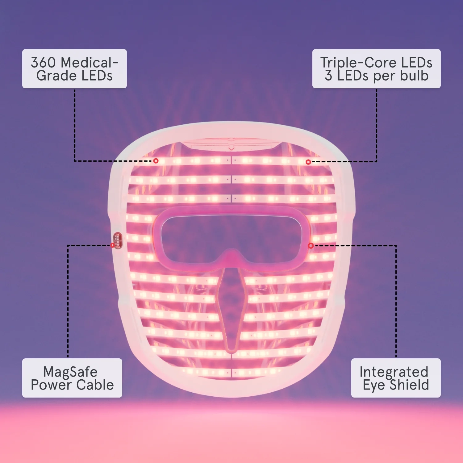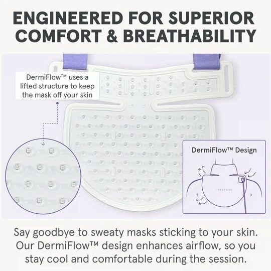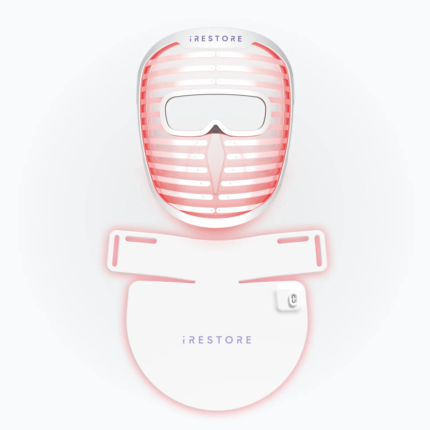Illumina Face Mask: The most comfortable and powerful LED light face mask. Features 2X more LEDs than leading competitors for complete coverage in a breathable design. Triple-wavelengths allow you to treat your skin with red, infrared, and blue light therapy all at once––unique to iRESTORE.
